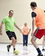 Beim Walking Football (Gehfußball) kann jede*r mitspielen, unabhängig vom Alter, dem Geschlecht und dem Leistungsstand. Spaß am Fußball, soziale Kontakte und die Freude an der Bewegung stehen im Vordergrund.
